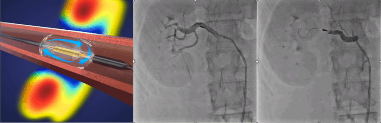 1. 高周波カテーテル: 微弱な電気で、らせん状に神経をケアします(図1および動画1参照)。